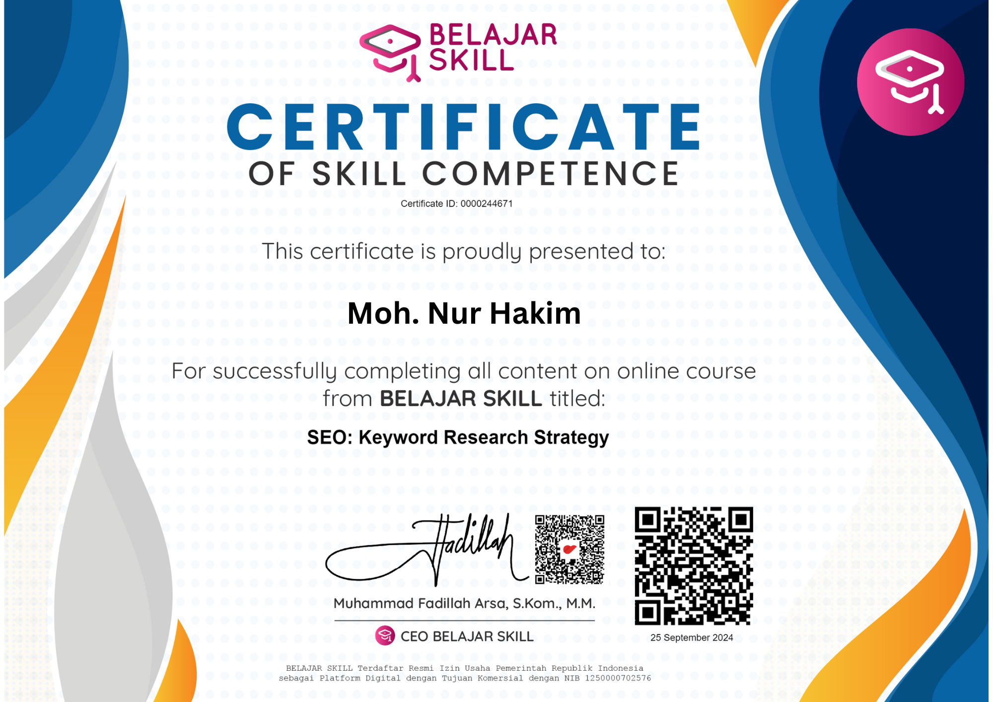 Lulus dengan predikat cumlaude dan mendapatkan beasiswa.